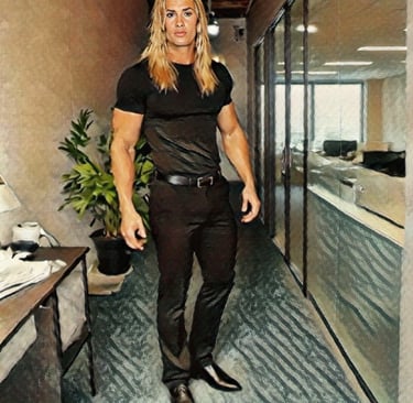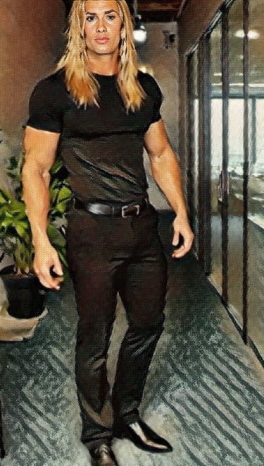 The undesirable noise of industrial sewing machines was like being in a metaverse away from the manicured lawns and hushed galleries he usually frequented. At eighteen, clad in a tight muscle shirt that stretched taut across his well-defined arms, his long blonde hair pulled back, he looked less like an aspiring corporate heir and more like a Greek statue on a day trip.